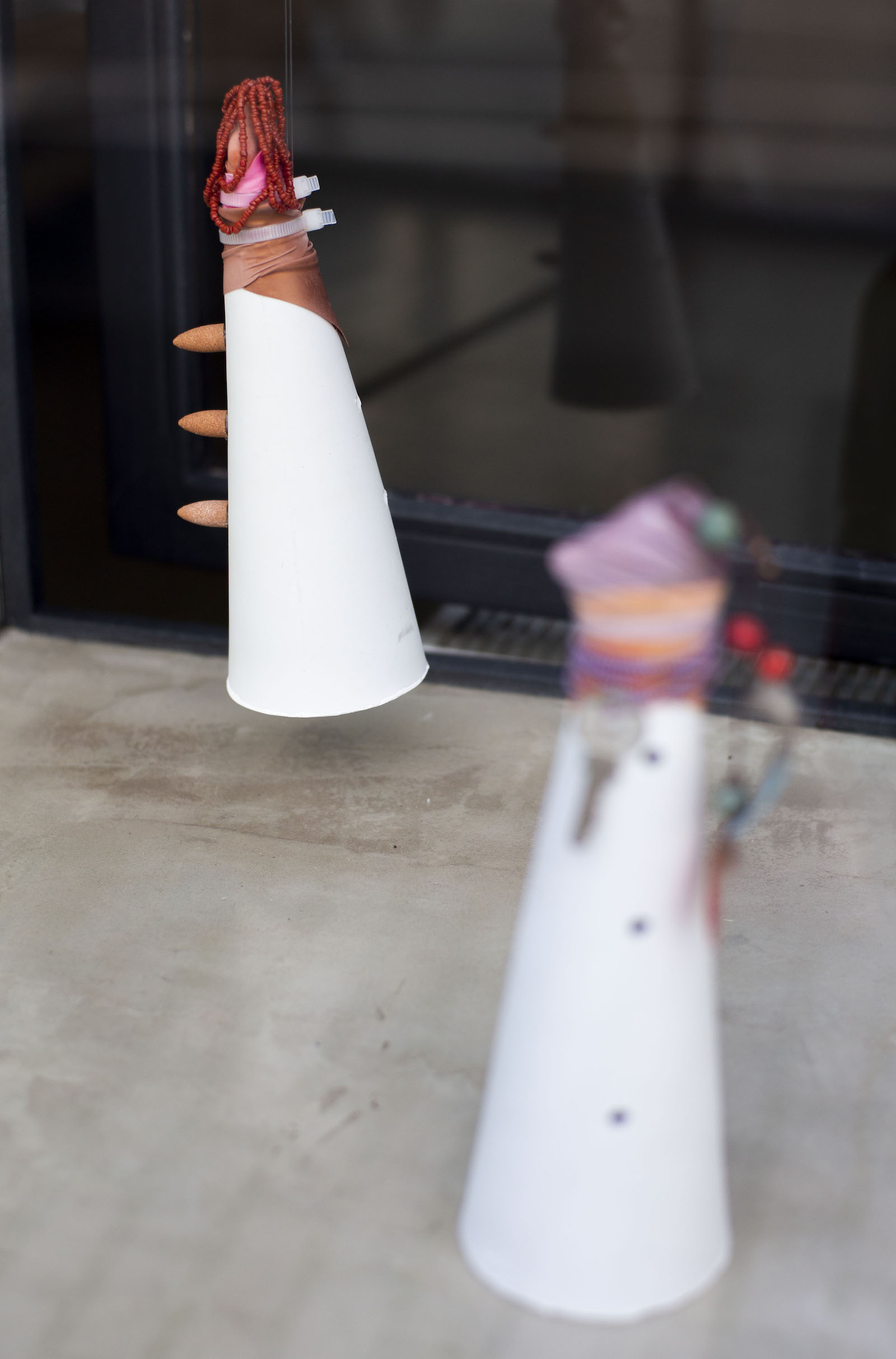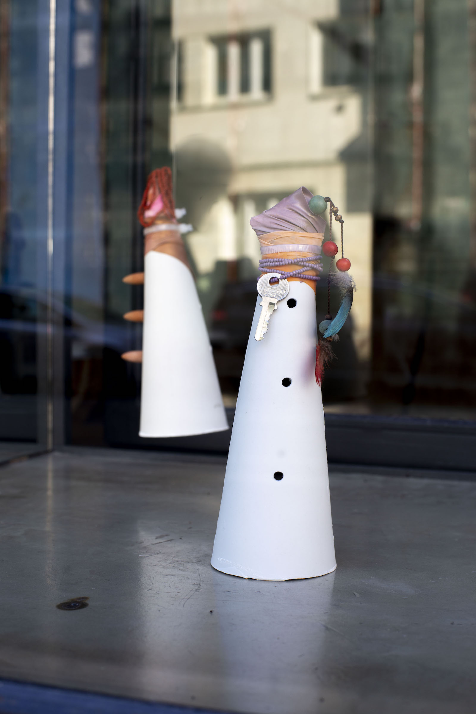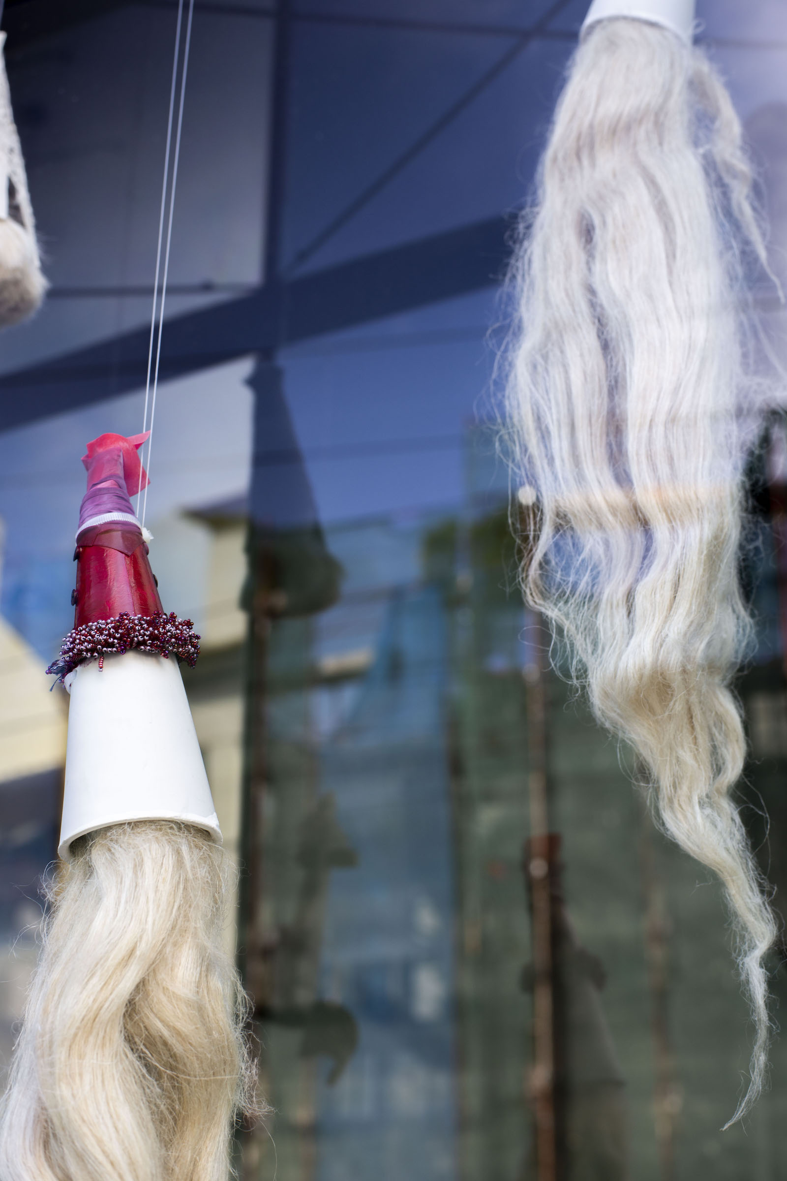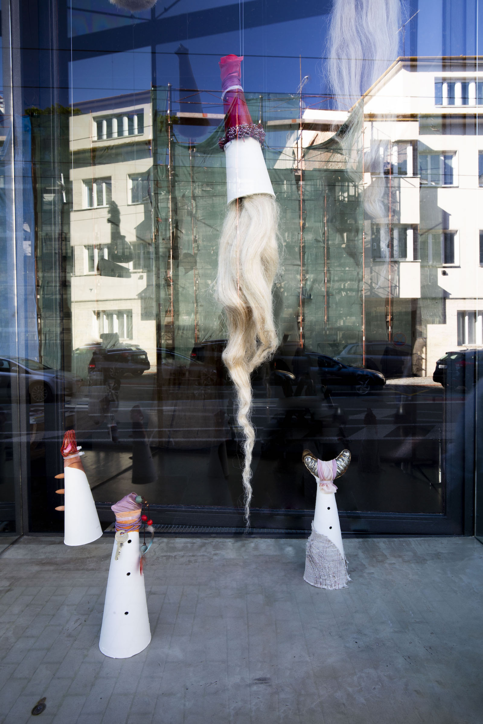 Panenky Voodoo Doo is a site-specific installation created for the storefront window of a hair salon in Brno. The work combines found objects, inherited materials, and personal relics, forming a poetic and fragmented inventory. Written as a rap-like list and displayed directly on the glass, the text itself became part of the installation — an incantation, a memory map, and a quiet spell.